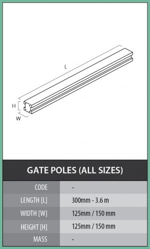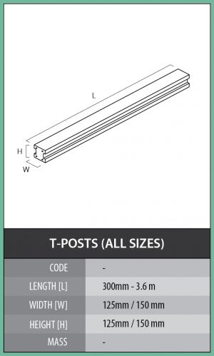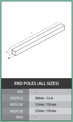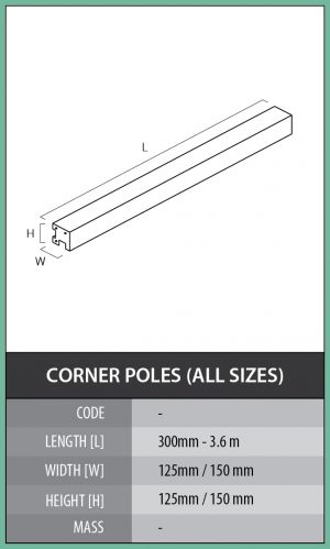 Length (L): 300mm – 3.6m Width (W): 125mm / 150mm Height (H): 125mm / 150mm